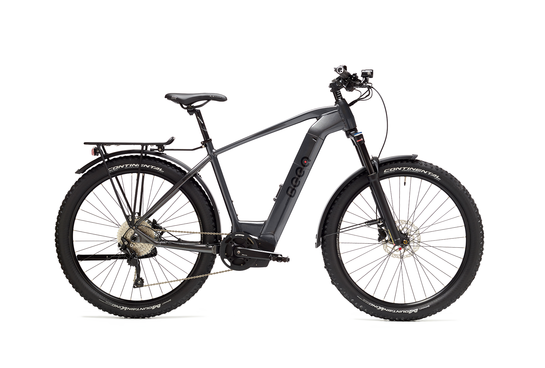 Desfruta do teu passeio graças aos detalhes desta e-bike, desde a geometria do quadro que garante estabilidade, os pneus com excelente aderência e a suspensão a ar que suaviza as irregularidades do terreno!
