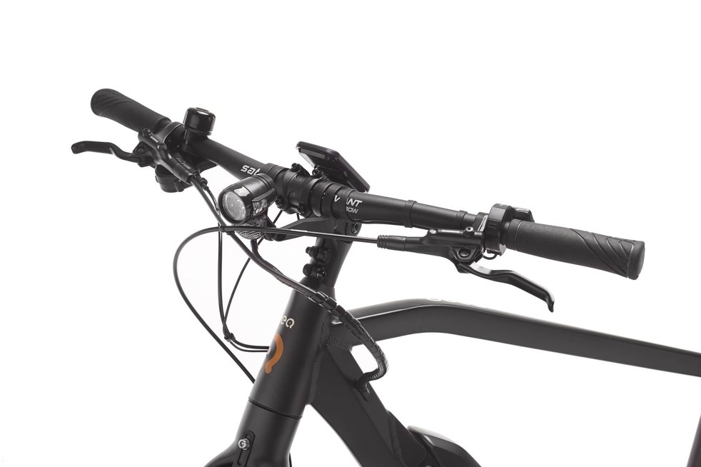 Bom domínio da bicicleta graças ao motor central integrado, quadro de alumínio com bateria integrada, aos travões hidráulicos SHIMANO, aos pneus Continental e ao guiador largo de 680mm.